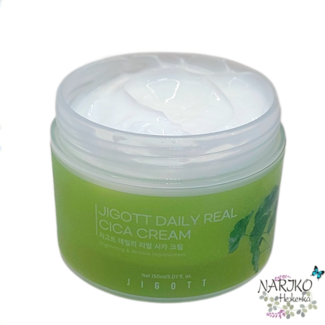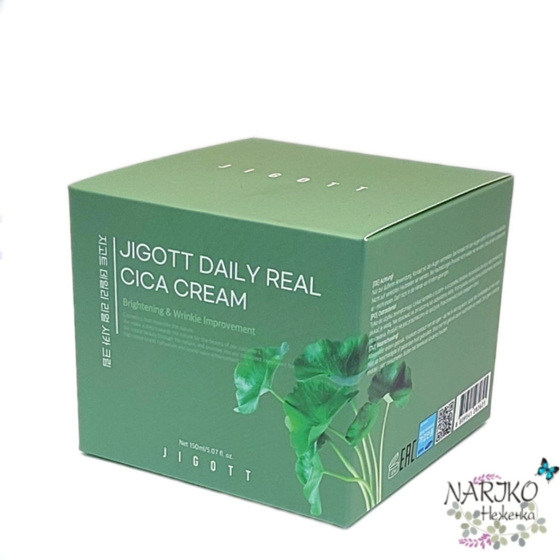 Крем для ежедневного ухода за кожей лица Daily Real Cica Cream корейского бренда JIGOTT с высоким содержанием Экстракта центеллы азиатской (2 000 ppm). Крем увлажняет, питает и успокаивает сухую, чувствительную или раздражённую кожу лица.