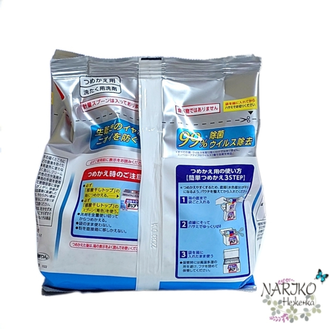 Концентрированный стиральный порошок LION Heyaboshi Top Ant-bacterial EX с антибактериальным компонентом предотвращает запах затхлости во время сушки белья, поэтому бельё прекрасно сохнет ночью, в дождливую и снежную погоду, а также в помещениях при плотном развешивании вещей друг к другу.