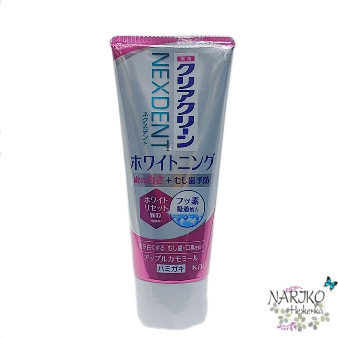 Японская зубная паста от бренда KAO для длительной защиты от кариеса, отбеливания и удаления табачного налёта содержит микрогранулы и яблочную кислоту.